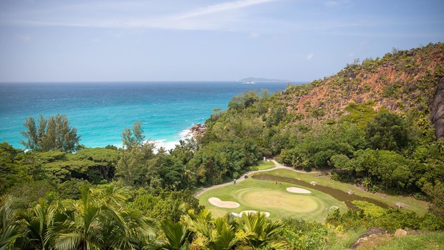 Lemuria Golf Course, Praslin Island, Seychelles, on Praslin Island is the only 18-hole course in this Indian Ocean archipelago. Palm trees, amazing amazing views, sun and crystal clear sea. For golfers staying at the resort, green fees are included in room rates.